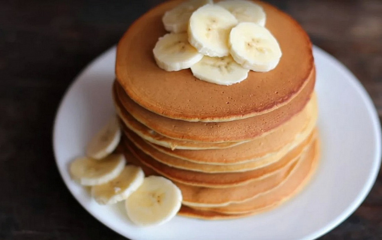 Выпекаю я панкейки на каменной сковороде, на ней можно печь без добавления масла. Выкладываю небольшие круги, на моей сковороде помещается 5 штук, и жду, когда появятся первые пузыри на тесте. Как только появились, сразу нужно переворачивать лопаткой. На вторую порцию можно немного убавить газ, чтобы не подгорали. Жарятся очень быстро, не упустите момент.