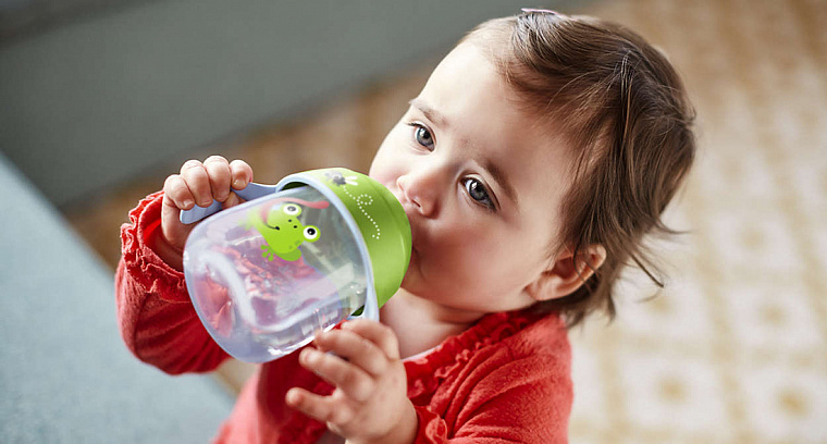 Ещё один вид детской посуды — поильник. Он представляет собой чашечку, закрытую крышкой с носиком, из которого ребёнок и пьёт налитую жидкость. Их ещё называют «непроливайками». Малыш может трясти свой первый стаканчик, бросать на пол, а сок, вода или чай останутся внутри. Выбирать поильник лучше с мягким силиконовым носиком, чтобы не поранить дёсны. Когда малыш подрастёт, то можно приобрести стаканчик с соломинкой, через неё очень интересно пить детям от 8 месяцев.