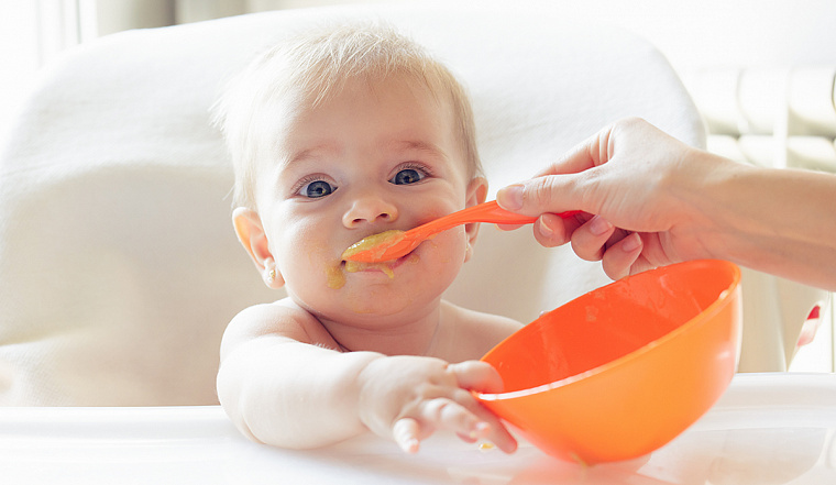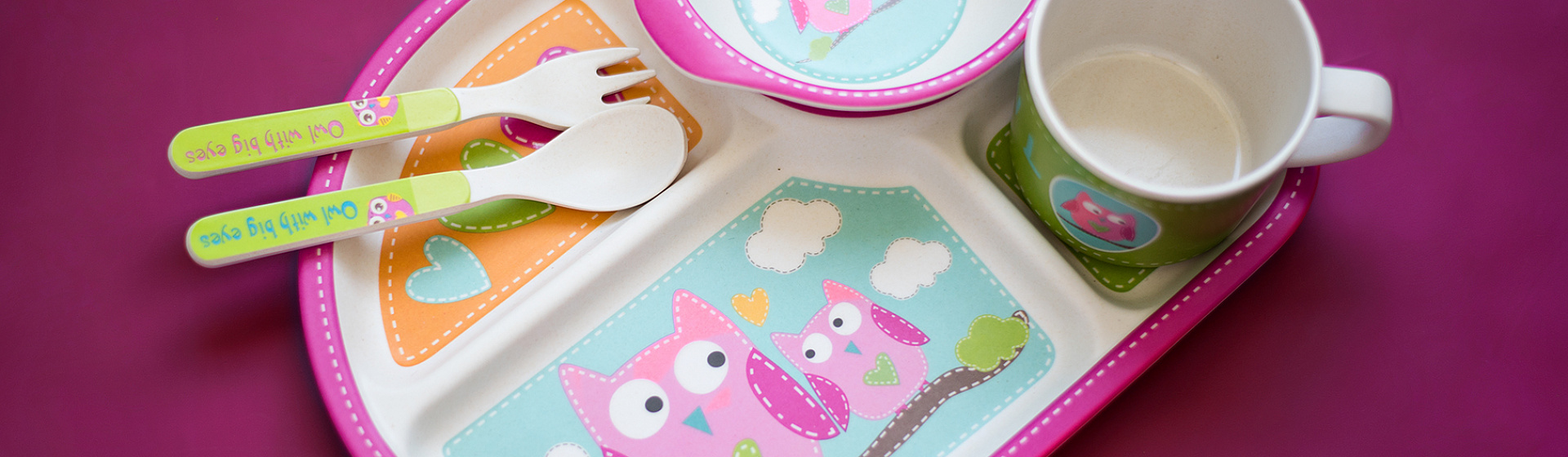 Как только малыш начинает пробовать первый прикорм, пора покупать индивидуальную тарелочку и ложку. Пока ребёнка кормит кто-то из родителей, можно ограничиться покупкой функциональной посуды. Например, в магазинах можно встретить тарелки с ребристым дном, о которое удобно размалывать и растирать пищу. Или тарелки, разделённые на несколько секций для разных видов пищи. Но как только малыш начинает есть самостоятельно, правильней будет приобрести интересную для него посуду. Яркая красивая тарелка с рисунками привлечёт внимание крохи и будет стимулировать его кушать предложенную еду.