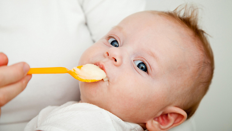 - Прикорм рекомендуется давать с ложечки, консистенция блюда не должна вызывать у малыша затруднений при проглатывании, а температура прикорма составлять примерно 37°С