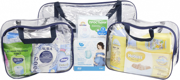 В первый пакет собираем то, что нужно в родах и первое необходимое для малыша