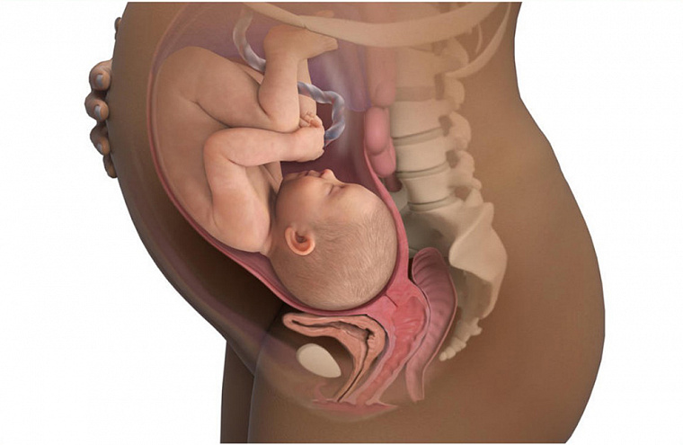 37 неделя. Вес 2800 кг, рост около 48 см. Плод сформирован, его желудочно-кишечный тракт готов к полноценной работе. Лёгкие способны дышать кислородом, налажен теплообмен. Он уже большой и не такой подвижный.