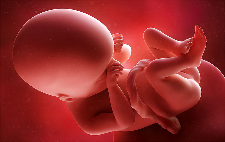 19 неделя. Вес 250 г, рост 15 см. Двигается упорядочено, дышит, вращает головой, тело покрыто первородной смазкой.