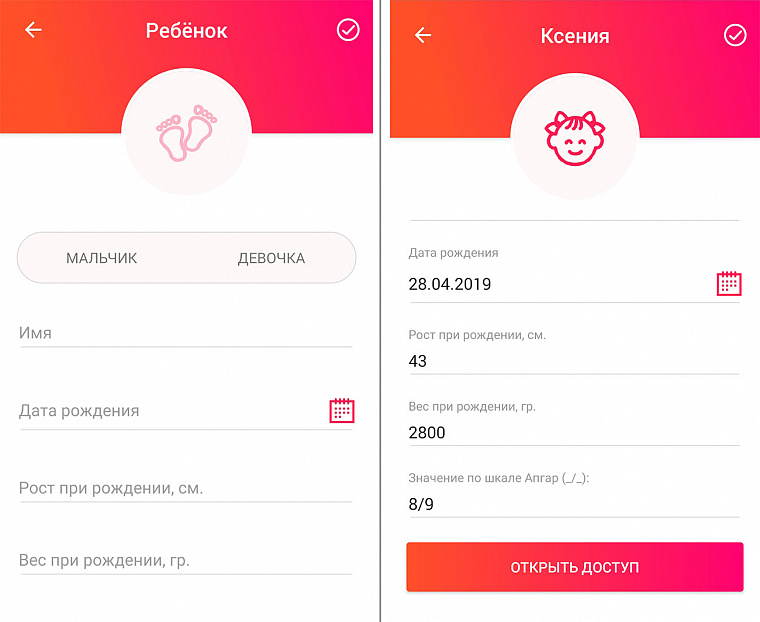 - После этого вводим все необходимые данные о малыше;