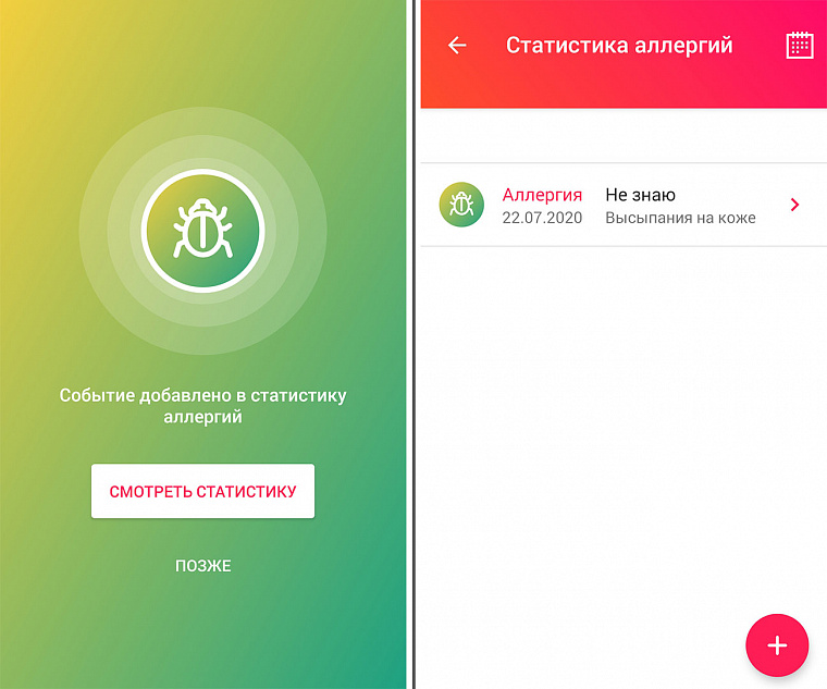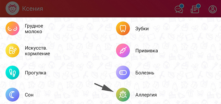 - Выбираете раздел «Аллергия» с иконкой-жучком.
