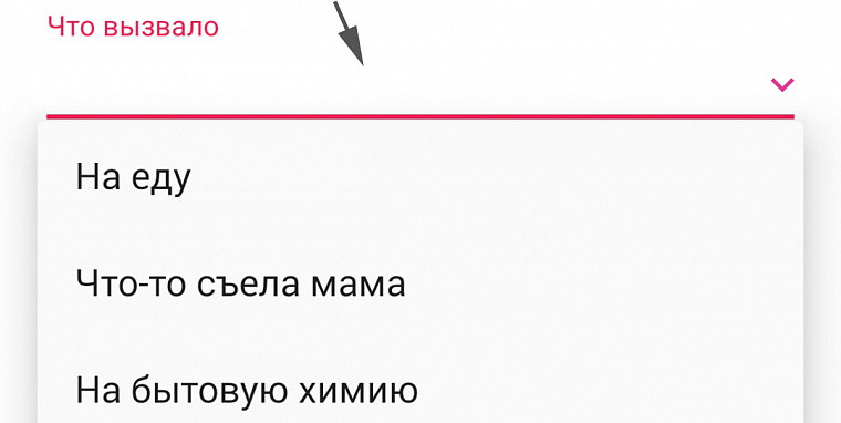 - Следующая строка — запись, что вызвало симптомы. Можно выбрать из выпадающего списка или ввести свой вариант.
