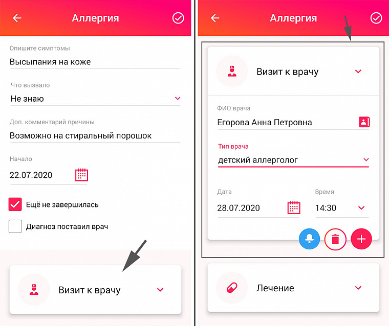 Для того, чтобы специалист смог правильно поставить диагноз, родителям необходимо тщательно следить за всеми изменениями. В этом приходит на помощь приложение «ProgrammaMama», раздел «Аллергия».