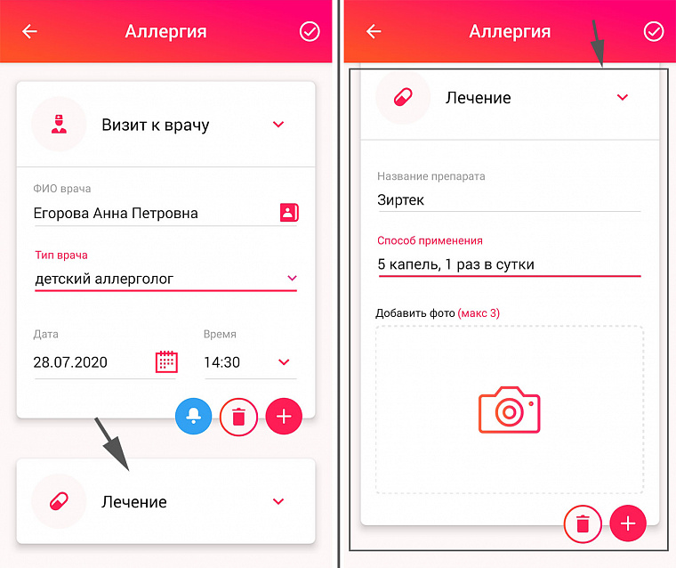 «Для нас выявить, на что у дочери аллергия — настоящий квест. Вроде бы всё учли, но вот снова появляются эти высыпания. Пытались вести дневник питания на бумаге, но постоянно забывали его то на даче, то у бабушки. Теперь все данные в моём телефоне. Если что-то пошло не так, сразу же вношу запись, чтобы потом проанализировать и понять, какой продукт дал такую реакцию. Очень удобно!» — Инна, мама Катерины, 2 года 3 месяца.