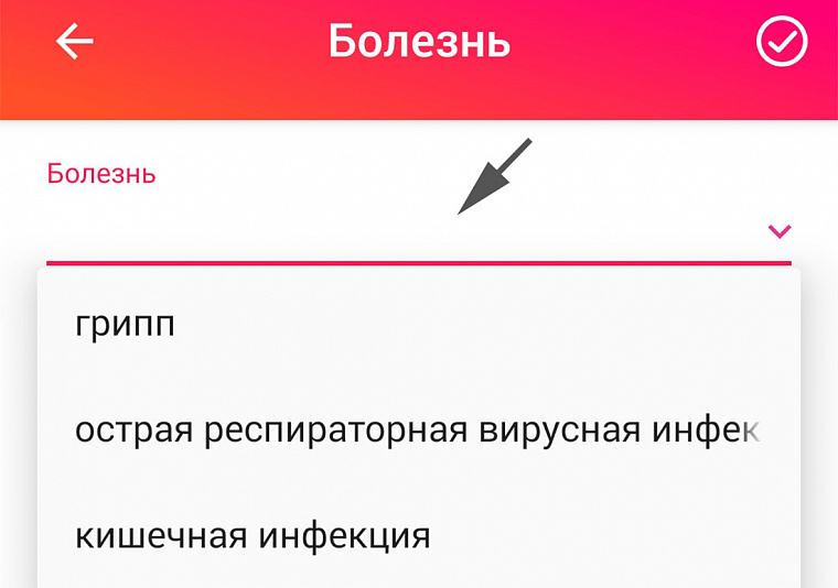 - В первой строке можно вручную ввести название заболевания или выбрать из выпадающего списка.