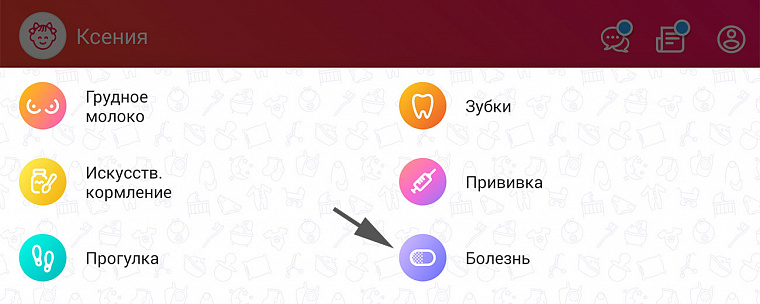- Выбираете раздел «Болезнь» с иконкой-пилюлей.