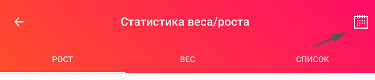 Чтобы напомнить себе об этих показателях в какой-то конкретный день, необходимо нажать на календарик в правом верхнем углу, после чего выбрать интересующую дату.