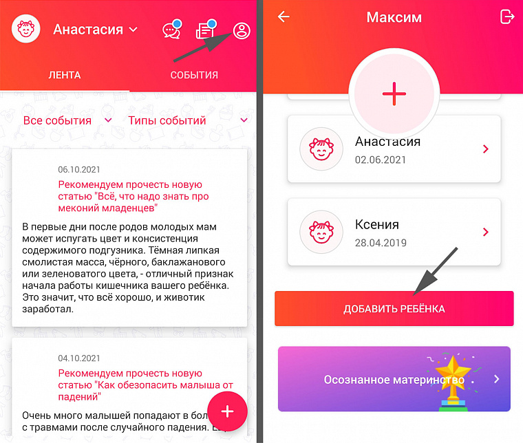 - Заполняешь данные о малыше и получаешь персонализированные советы от врачей и экспертов