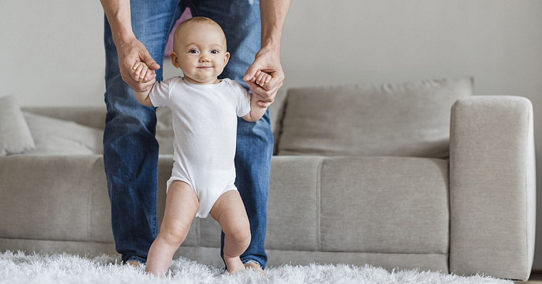 К году ребёнок должен сделать хотя бы несколько шагов с поддержкой взрослого. Может наклоняться, чтобы взять предмет, бросать предметы, стоять на одной ноге, относить предметы, спускаться и подниматься по лестнице, прыгать на месте. В два-три года ребёнок бегает, прыгает, ходит на носках, сидит на корточках. Формируются навыки игры, появляются возможности самообслуживания – питания, одевания и пр.