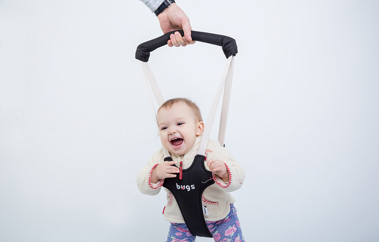 Хорошую помощь родителям в обучении и тренировке ходьбе оказывают всяческие приспособления: ходунки, вожжи, коляска-каталка. Ходунки очень удобны, но их практическая помощь в обучении ходьбе не доказана, однако не доказан и вред. Ясно, что ребёнку нельзя находиться в ходунках долго. Для тех детей, у которых выявлена дисплазия тазобедренных суставов, они вовсе противопоказаны. Вожжи и коляска-каталка более полезны в формировании равновесия.