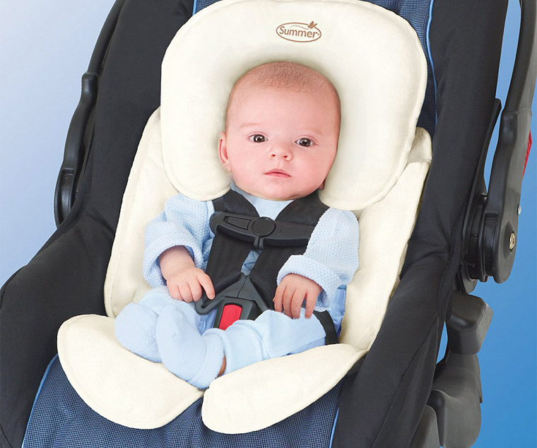- Автокресло должно быть оснащено ортопедическим вкладышем, который поможет хорошо зафиксировать головку, пока малыш самостоятельно не может её удерживать.