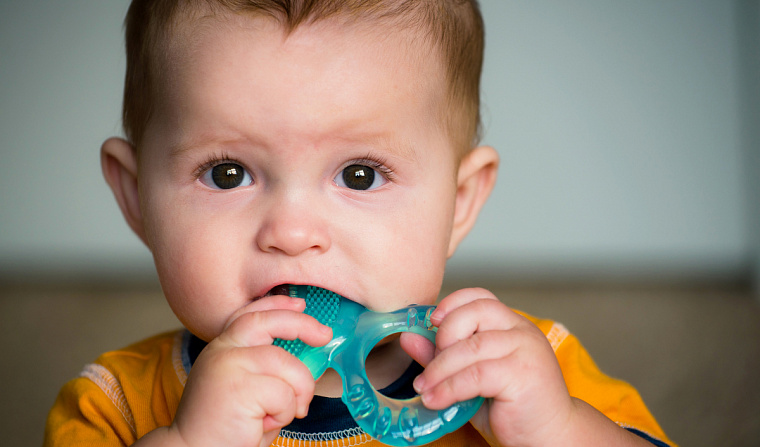 Прорезыватели можно сосать, кусать и грызть. Такие помощники облегчают появление зубов. Выбирайте прорезыватели из прочного безопасного материала — резины, латекса или силикона проверенных фирм, без текстильных деталей. Многим малышам нравятся экземпляры с охлаждающим эффектом в виде колец, ключей или фруктов и ягод.