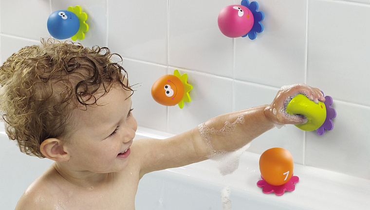 Почти все детишки любят плескаться в воде и одновременно играть со зверятами, куколками. Если мы в детстве купались в ванне в основном с уточками и пупсиками, то сейчас ассортимент непромокаемых игрушек значительно расширился. Производители выпускают книжки для ванной, барабаны, лейки, баскетбольные корзины, удочки для рыбной ловли. Особенно в восторге дети от приспособлений для образования мыльных пузырей в ванной, наклеек на присосках, заводных лягушат. Покупая игрушки, которые часто находятся в воде, проверьте можно ли их вымыть и высушить полностью, не будет ли в них скапливаться жидкость и образовываться плесень.