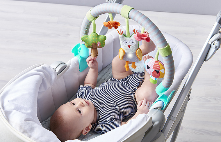 Такой вид игрушек очень полезен, когда ребёнок вынужденно находится долгое время один в кроватке, коляске, стульчике для кормления. Они веселят грудничка, пока мама занята другими делами. Необходимо строго следить за качеством таких игрушек. Посмотрите, какой толщины пластик у предметов, не смывается ли краска, нет ли мелких деталей, прочная ли резинка у растяжки. Красивые, яркие мамины помощники не раз высвободят для мамы лишние 15 минут для неотложных дел.