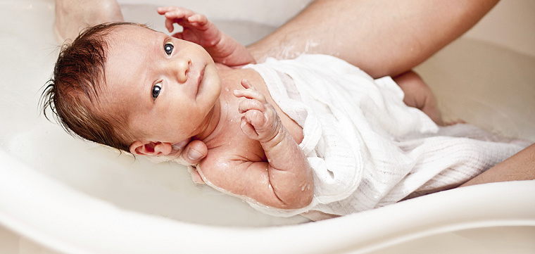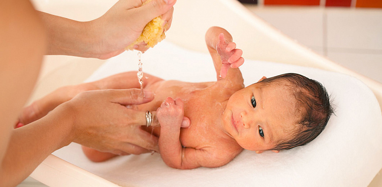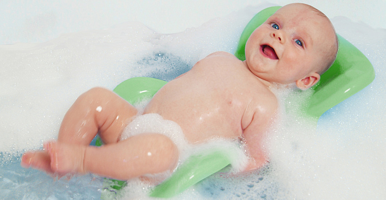 Если вы купаете кроху в большой ванной, то чтобы помыть его в конце купания зачерпните из ванной ведро воды, потом намыльте малыша прямо в воде, один или пару-тройку раз и лучше руками, а не мочалкой. Затем поднимите ребенка под мышки, а второй взрослый пусть очень аккуратно выльет на малыша сверху ведро воды.