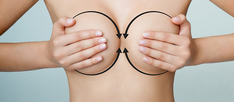 - Проводить массаж груди, живота и бёдер с применением кремов, усиливающих тонус кожи. Массаж производится круговыми движениями от грудины к соскам, потом от центра груди к подмышкам, затем снизу вверх.