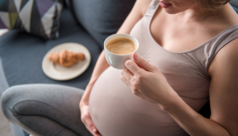 Ещё одна вредная привычка, от которой лучше отказаться во время беременности, — чрезмерное употребление кофеина, это примерно 5-6 чашек кофе. Из-за кофеина поднимается давление, а сосуды плаценты сужаются и нарушается кровоток. Поэтому к плоду доходит меньше кислорода и питательных веществ. А железо, необходимое и маме, и малышу, усваивается плохо. Во время беременности стоит сократить употребление кофе до одной или двух чашей. Но стоит помнить, что кофеин есть и в чае, газированных напитках, какао и шоколаде. Всё это можно заменить безкофеиновыми напитками или просто сократить время заварки чая.
