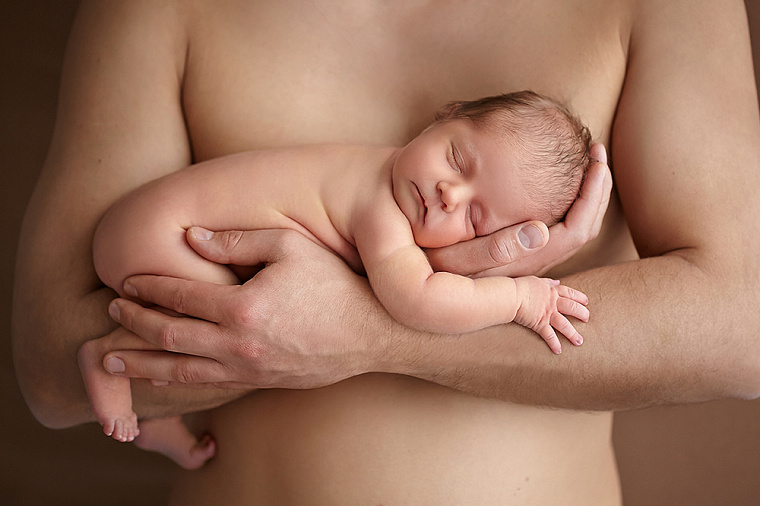 Папы могут покачать малыша в положении «тигр на ветке». Для этого надо согнуть руку в локте и положить на неё младенца. Голова малыша должна оказаться в ладони папы. В таком положении можно покатать ребёнка по комнате, «полетать», как на самолёте.