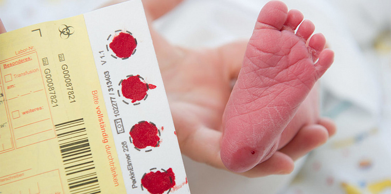 Это исследование рассчитано на выявление 5-ти тяжёлых заболеваний. У доношенных детей берут кровь из пяточки на четвёртые сутки, у недоношенных – на седьмые. Если женщина рожала дома, скрининг проводят в детской поликлинике. Благодаря этому раннему исследованию наследственные заболевания выявляются у 1% младенцев.