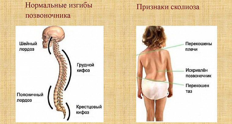 Ещё одним наиболее частым заболеванием является сколиоз. Он может возникнуть при плохой наследственности, родовых травмах и условиях плохой экологии.