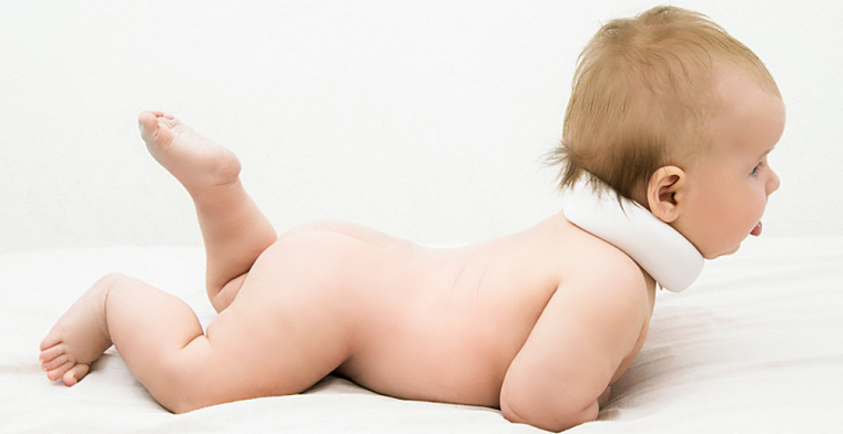 В первые дни в роддоме, когда малыша будут обследовать неонатологи, могут выявить распространённые патологии – кривошею или синдром короткой шеи. Кривошею часто ставят «кесарятам»: мол, лежали в утробе неудобно и не «расправили» шейку на выходе. Часто консервативное лечение – ношение воротника Шанца – назначают прямо в роддоме или сразу после выписки. Воротник Шанца для новорождённых врач закрепляет на шейке довольно плотно, он помогает мышцам шеи принять правильное положение. Иногда требуется всего несколько дней, чтобы шейка выровнялась, иногда – дольше, подключаются массажисты, остеопаты.